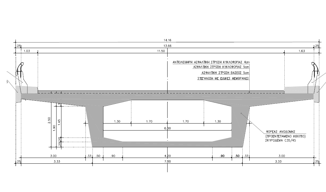 Το Έργο αποτελείται από τα παρακάτω τεχνικά Γεφυρών: